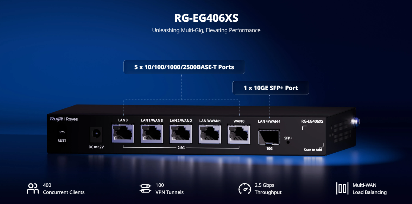 RG-EG406XS, 5-Port 2.5G Cloud Managed Router, 1 x 10G Port