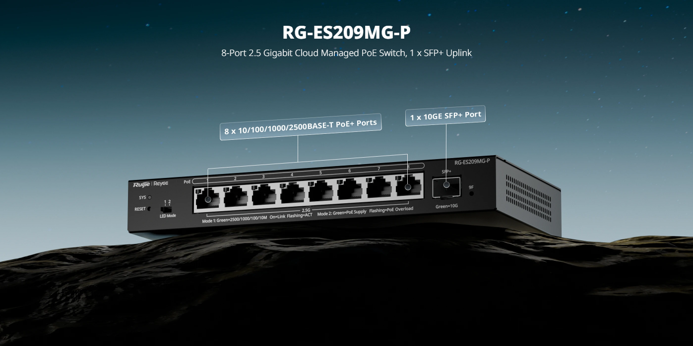 RG-ES209MG-P, 8-Port 2.5G Cloud Managed PoE Switch, 1 x 10G Uplink