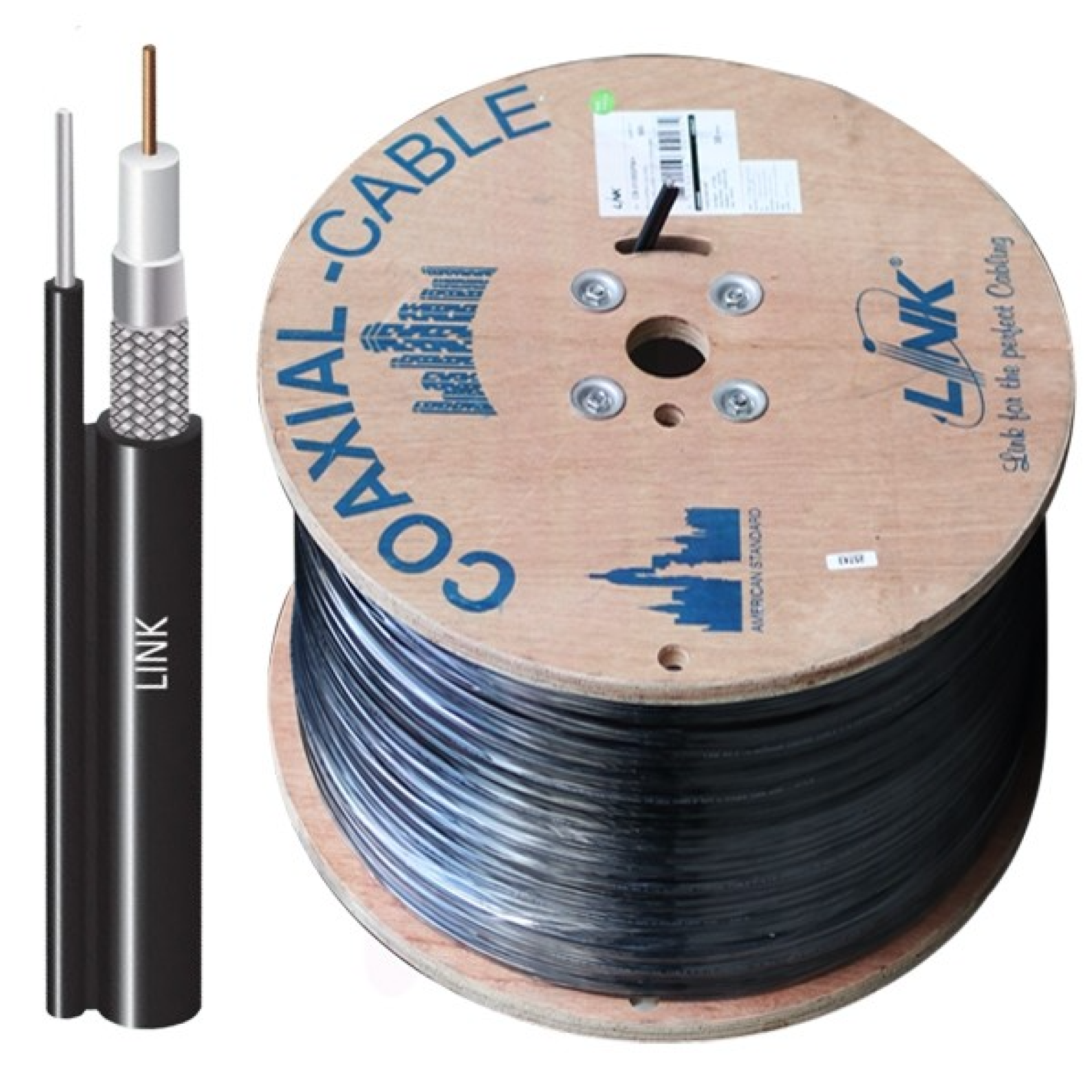 สายCoaxial (RG6) Shield 95% ถัก 144 เส้น พร้อมสายไฟขนาด 0.75 Sq.mm, ยาว 100 เมตร ผลิตจากวัสดุ PVC..