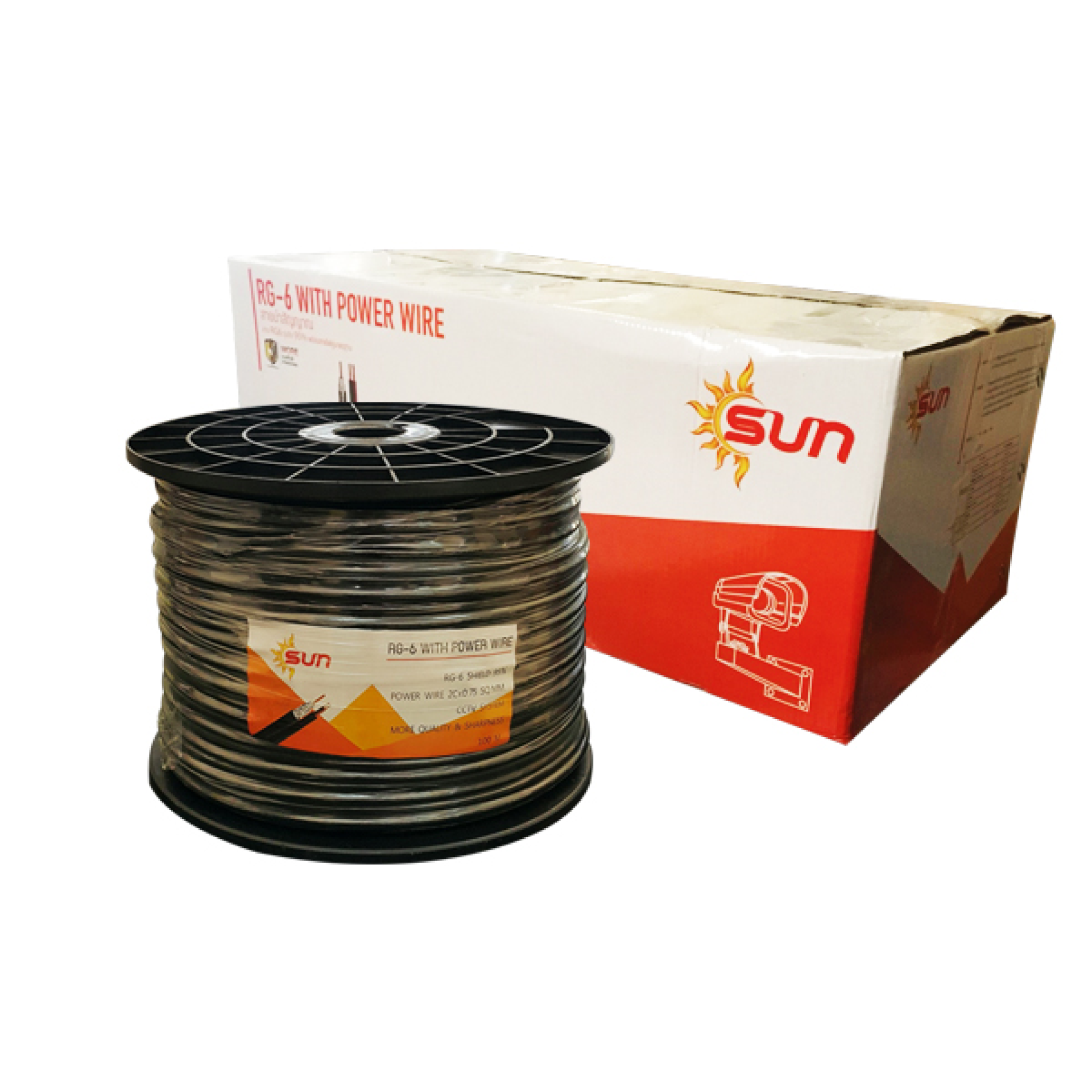 สายCoaxial (RG6) Shield 95% ถัก 144 เส้น พร้อมสายไฟขนาด 0.75 Sq.mm, ยาว 100 เมตร ผลิตจากวัสดุ PVC
